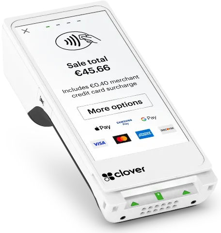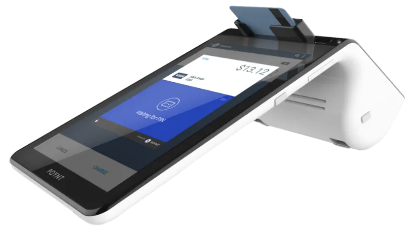 A modern, wireless smart terminal with a sleek touchscreen interface. Accept payments anywhere in your store with speed, security, and style — perfect for countertop or handheld use.